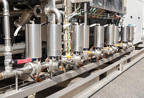 das Kaltwasser für den Kondensator, der das Wasser/ Ethanol-Gemisch verflüssigt und den Alkoholgehalt des behandelten Produkts reduziert.