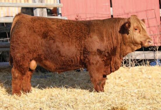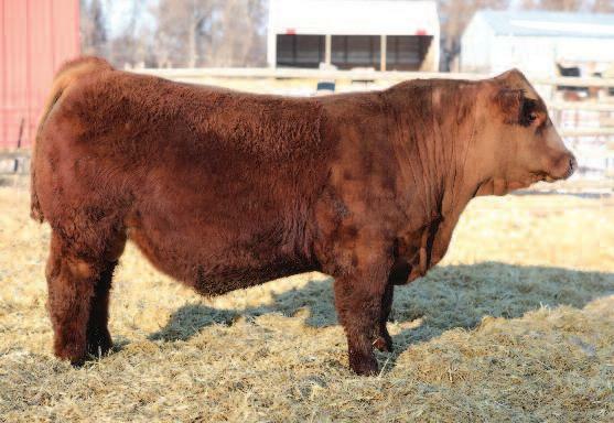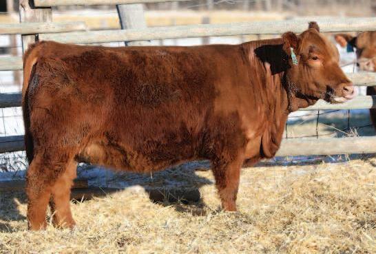 18 I really like this cherr y red homozygous polled Bentley son, will make a great outcross genetic sire for our red breeders He is the natural calf out of our Y166 donor cow who is impressive in her own right He is pretty special, buy with confidence WHEATLAND BULL 630D Sire: IPU BENTLEY 81F CLAYHILL FANCY LUCA 39A ELLINGSON 680S W962 Dam: ELLINGSON MS W962 Y166 ELLINGSON CROCKETT U856 CE: BW: WW: YW: MCE: MM: MWW: 1 8 4 9 83 7 122 8 0 29 5 71 3 CW: YG: MB: BF: REA: Stay: API: TI: 32.7 - 53 00 - 084 1 31 12 1 100 73 ELLINGSON BENTLEY K2010 ASA# 4088765 Owned by: ELLINGSON SIMMENTALS • Homo Polled PB Bull Tattoo: K2010 • Birthdate: 2/20/22 • Act BW: 113 lbs • Adj BW: 113 lbs Adj WW: 736 lbs • Adj YW: 1268 lbs • ADG: 3 3 lbs • WDA: 3 5 lbs EPDs 62 This cherr y red homozygous polled Bulletproof bull is going to make some awesome offspring, just a great set of per formance EPD’s with impressive carcass data He has the fourth highest ADG and the third highest WDA! GW REDESTINED 642X Sire: RFS BULLETPROOF B42 RFS MISS Z119 SILVEIRAS MISSION NEXUS 1378 Dam: ELLINGSON MS NEXUS F8051 ELLINGSON LONG CUT N358 CE: BW: WW: YW: MCE: MM: MWW: 7.7 2.1 93 3 152 6 5 8 24 70 7 CW: YG: MB: BF: REA: Stay: API: TI: 47 2 -.30 30 - 066 90 11 1 122 86 ELLINGSON BULLETPROOF K2015 ASA# 4088862 Owned by: ELLINGSON SIMMENTALS • Homo Polled 3/4 SM Bull Tattoo: K2015 • Birthdate: 2/22/22 • Act BW: 97 lbs • Adj BW: 97 lbs Adj. WW: 766 lbs. • Adj. YW: 1470 lbs. • ADG: 4.4 lbs. • WDA: 4.0 lbs. EPDs 63 Here is a unique one, a dark red homozygous polled Yuma son that has a top per forming Wallbanger dam, going back to our foundation 02K cow A definite outcross pedigree for red genetics, take a serious look at him, he will fit the bill! R PLUS 5015C Sire: R PLUS YUMA 9087G MISS R PLUS 3007A HARVIE JDFWALLBANGER111X Dam: ELLINGSON WALBANGR C5027 ELLINGSON MS GANUFF 02K CE: BW: WW: YW: MCE: MM: MWW: 7 9 2 2 87 4 139 3 2 5 27 6 71.3 CW: YG: MB: BF: REA: Stay: API: TI: 37 9 - 34 - 18 - 094 70 14 5 110 75 ELLINGSON YUMA K2016 ASA# 4088850 Owned by: ELLINGSON SIMMENTALS • Homo Polled PB Bull Tattoo: K2016 • Birthdate: 2/22/22 • Act BW: 97 lbs • Adj BW: 97 lbs Adj WW: 785 lbs • Adj YW: 1257 lbs • ADG: 2 9 lbs • WDA: 3 6 lbs EPDs 64 Karr is a solid red bull that is homozygous polled and out of the great Faith cow This is the only red bull out of the outcross IPU Bentley sire group as the other 2 brothers are black Karr has a ton of rib and thickness that will carr y over to his offspring He had our 3rd best average daily gain Just a solid set of red and homozygous polled calves out of Faith WHEATLAND BULL 630D Sire: IPU BENTLEY 81F CLAYHILL FANCY LUCA 39A W/C EXECUTIVE ORDER 8543B Dam: ELLINGSON FAITH F813 EKHCC RED JEWEL 760 CE: BW: WW: YW: MCE: MM: MWW: 8.2 1 5 81 5 110 2 4 4 22 6 63 3 CW: YG: MB: BF: REA: Stay: API: TI: 20.9 -.47 11 - 083 97 13 9 121 79 ELLINGSON/STR KARR K2127 ASA# 4102349 Owned by: STROMMEN SIMMENTALS • Homo Polled PB Bull Tattoo: K2127 • Birthdate: 2/19/22 • Act BW: 101 lbs • Adj BW: 101 lbs Adj. WW: 645 lbs. • Adj. YW: 1315 lbs. • ADG: 4.2 lbs. • WDA: 3.4 lbs. EPDs 61 61 62 63 64 Y E A R L I N G B U L L S
