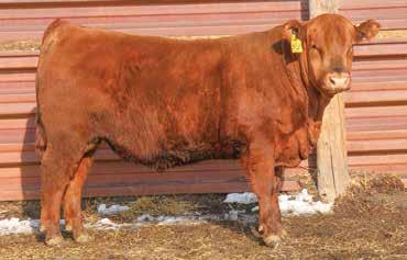 Ridge True North is a bull we purchased to use as a cleanup bull on a group of cows to introduce a different pedigree into our lineup. His first three calf crops have performed well and we are calving his second set of daughters this year. These first-calf heifers offer a little more size but have very nice udders and good feet. Owned with Sandbur Ridge Red Angus. REG. # TATTOO: BD: 4277939 [ [ [ [