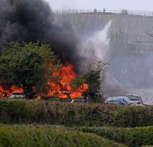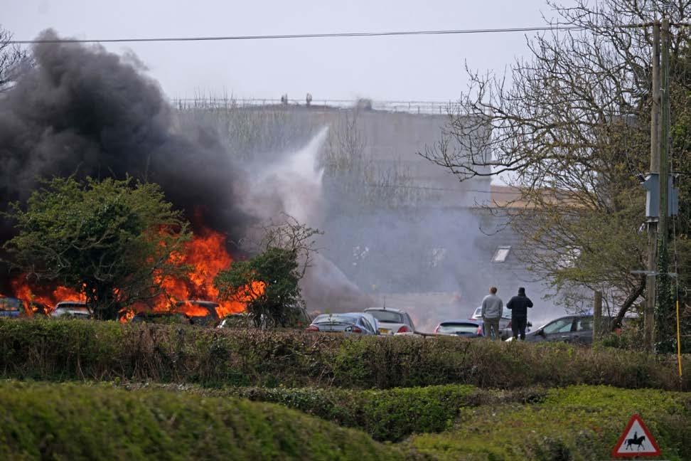“Crews responded to approximately 150 vehicles on fire, at the height of the incident, 12 fire appliances were in attendance. Crews utilised six breathing apparatus sets, nine hose reel jets, two ground monitors and approximately 1,000 litres of foam to extinguish the fire.