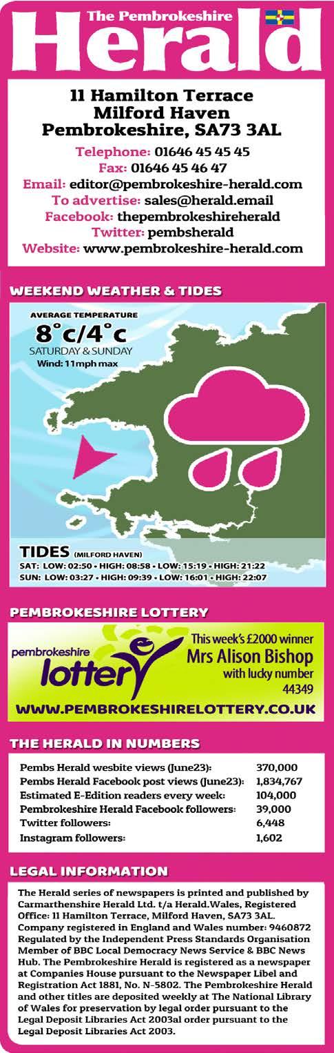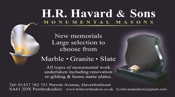 Rest, Fishguard at 11:30am followed by cremation at Parc Gwyn, Narberth at 1pm. Family flowers only. Donations in lieu if desired, made payable to ‘British Heart Foundation Cymru’ c/o Paul Jenkins & Sons Funeral Directors, Feidr Castell, Fishguard, SA65 9BB. Tel: 01348 873250.