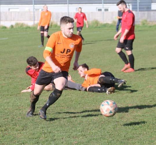 oranges a brace for Ben ‘Rocky’ John, meant the visitors were 4-1 up and three points looked inevitable. However Izzard and Griffiths both struck back for the hosts as they showed good character, Fox’ team however defended well and came out 4-3 winners.