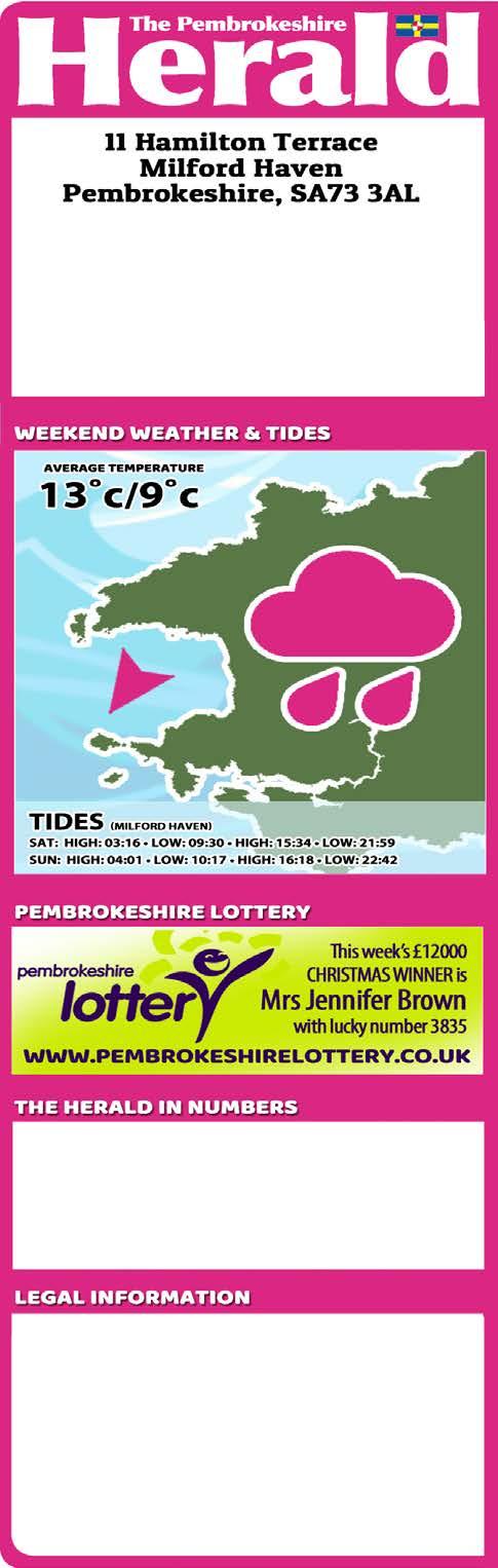 To ThANk supporters during their 30 th Anniversary year, the Pembrokeshire Lottery increased the prize amounts and the biggest of the lot was the Christmas Superdaw, held on 6 th December with a whopping £12,000 prize!