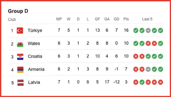 The plot thickens with the twist of Armenia lurking just three points behind. A victory for Armenia in both their upcoming matches against Cymru and Croatia could trigger a thrilling threeway tie, with all three teams locked at 13 points. The outcome of this mini-league would hinge on the head-to-head results in the upcoming fixtures.
