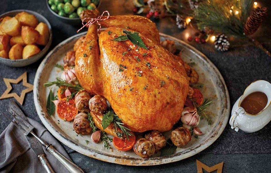 SERVED WITH SAGE, ONION, AND CRANBERRY STUFFING, PIG IN BLANKET YORKSHIRE PUDDING, ROAST POTATOES, CARROT & SWEDE MASH, SEASONAL VEGETABLES & GRAVY