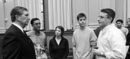 3 Law and Entrepreneurship Lecturer Michael J. Biondi (right), Lazard Ltd, chats with students from the audience (see page 24).