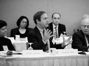 5 Corporate Law Roundtable, Spring 2006. Front row: Simon M. Lorne, Millennium Management; Harvey Goldschmid, Columbia Law School. Back: James D. Cox, Duke University School of Law; Robert B. Thompson, Vanderbilt University Law School; Merritt B. Fox, Columbia Law School (see page 10).