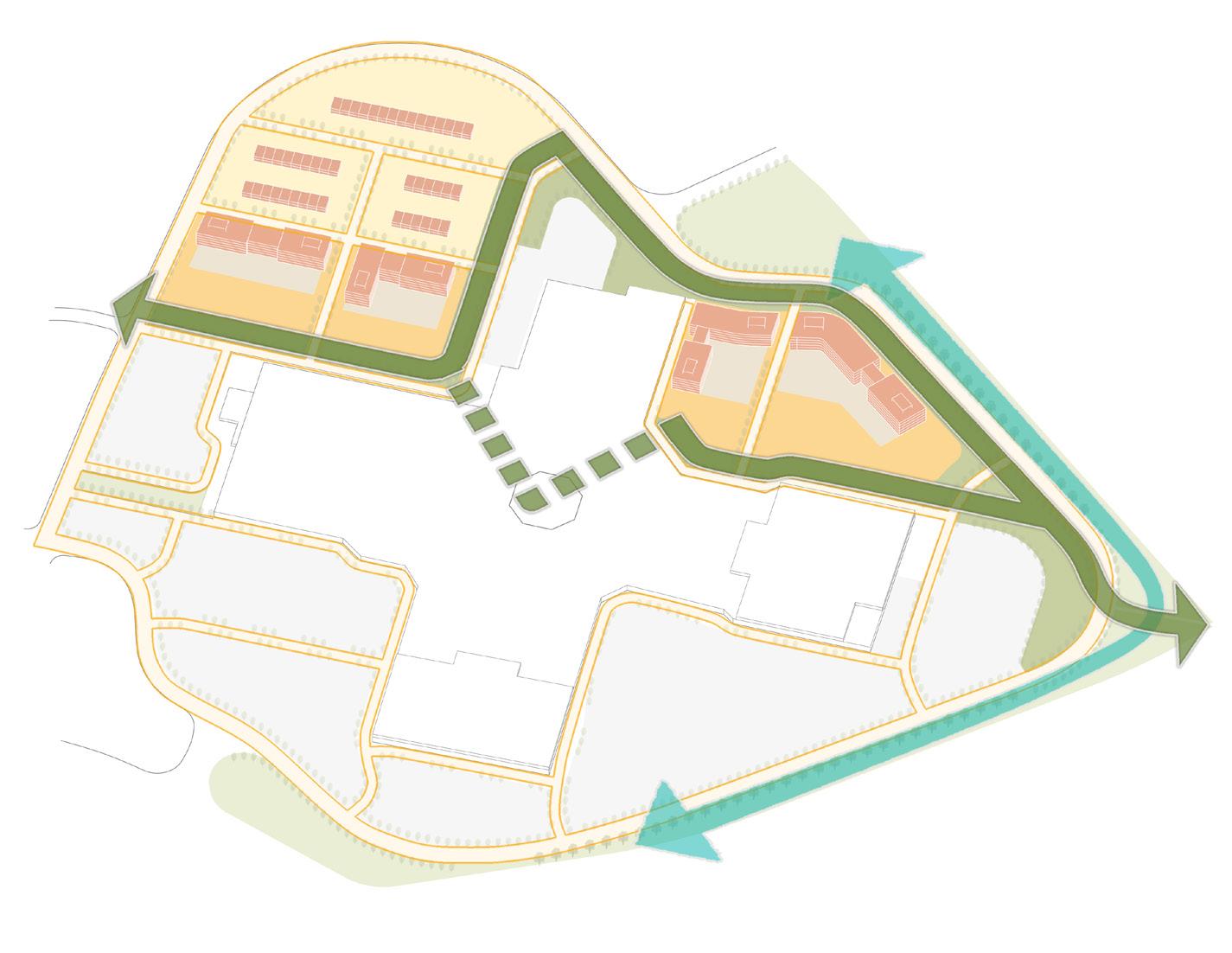 We have explored three development scenarios for Park City Center that reflect different the social, environmental, and economic outcomes. The Businessas-Usual Scenario considers Park City’s current layout and commercial land uses if continued into the foreseeable future. Scenario One incorporates housing at Park City Center and envisions improvement to its retail and commercial mix with sufficient pedestrian access and the addition of green space to better manage stormwater. Scenario Two reconfigures Park City Center as town center that blends housing and commercial space in a pedestrian-friendly design with ample green space.