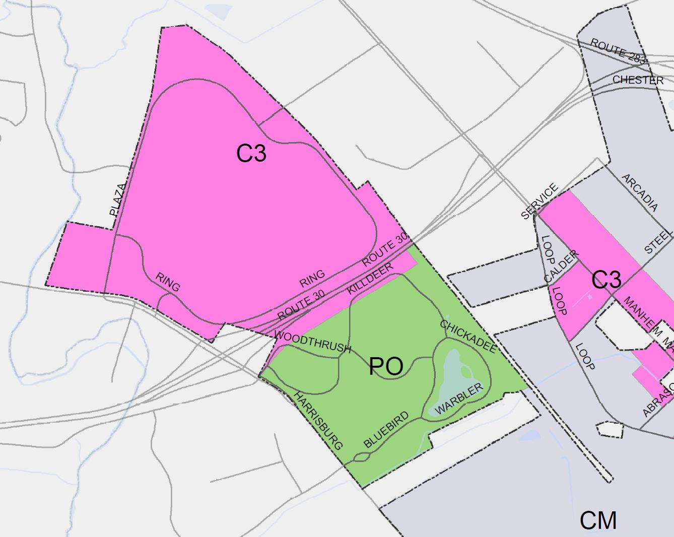 Park City Center lies within the largest of Lancaster City’s 10 separate C-3, Regional Commercial zoning districts (see Figure 15). C-3 districts are highway-oriented and located in areas isolated from residential districts.
