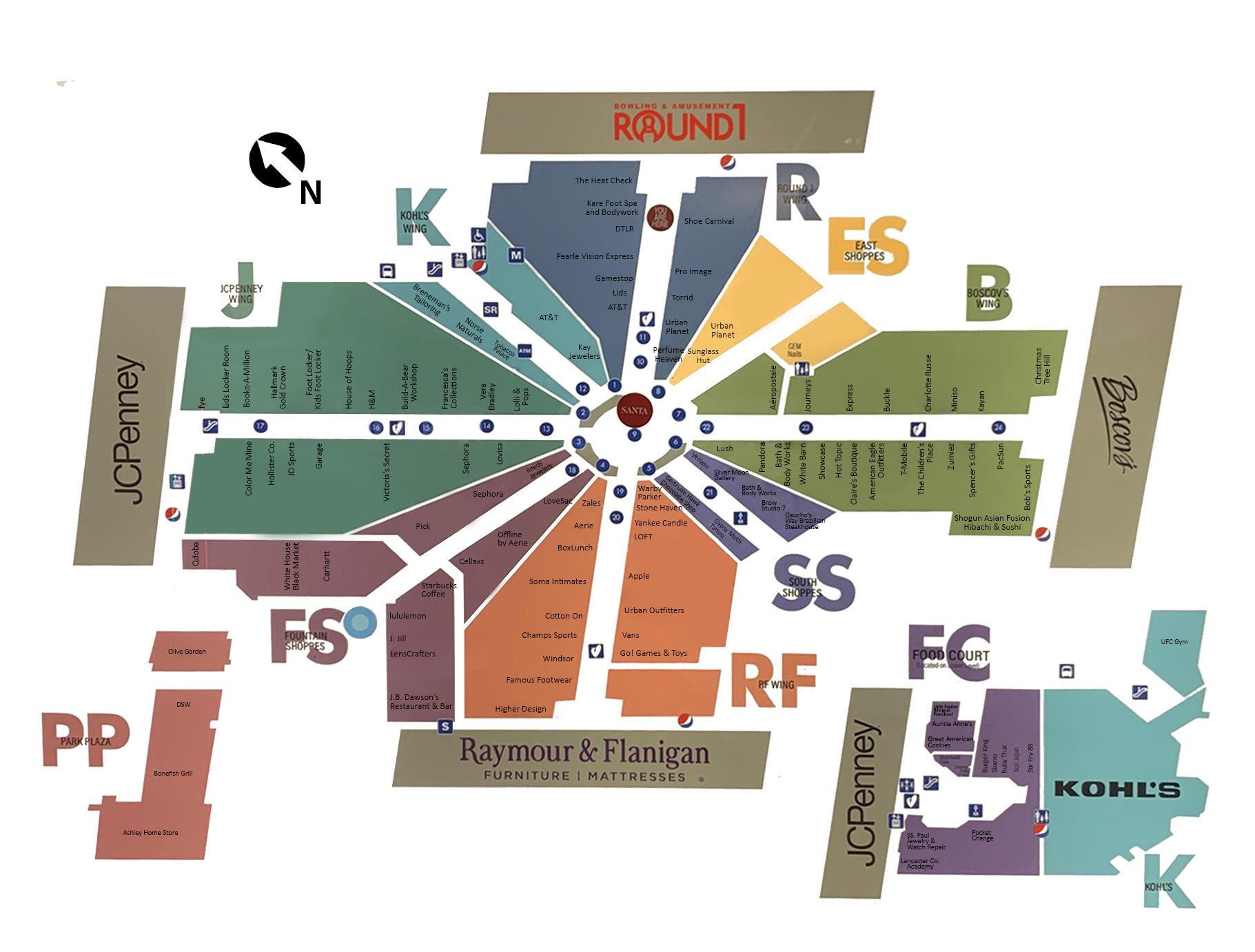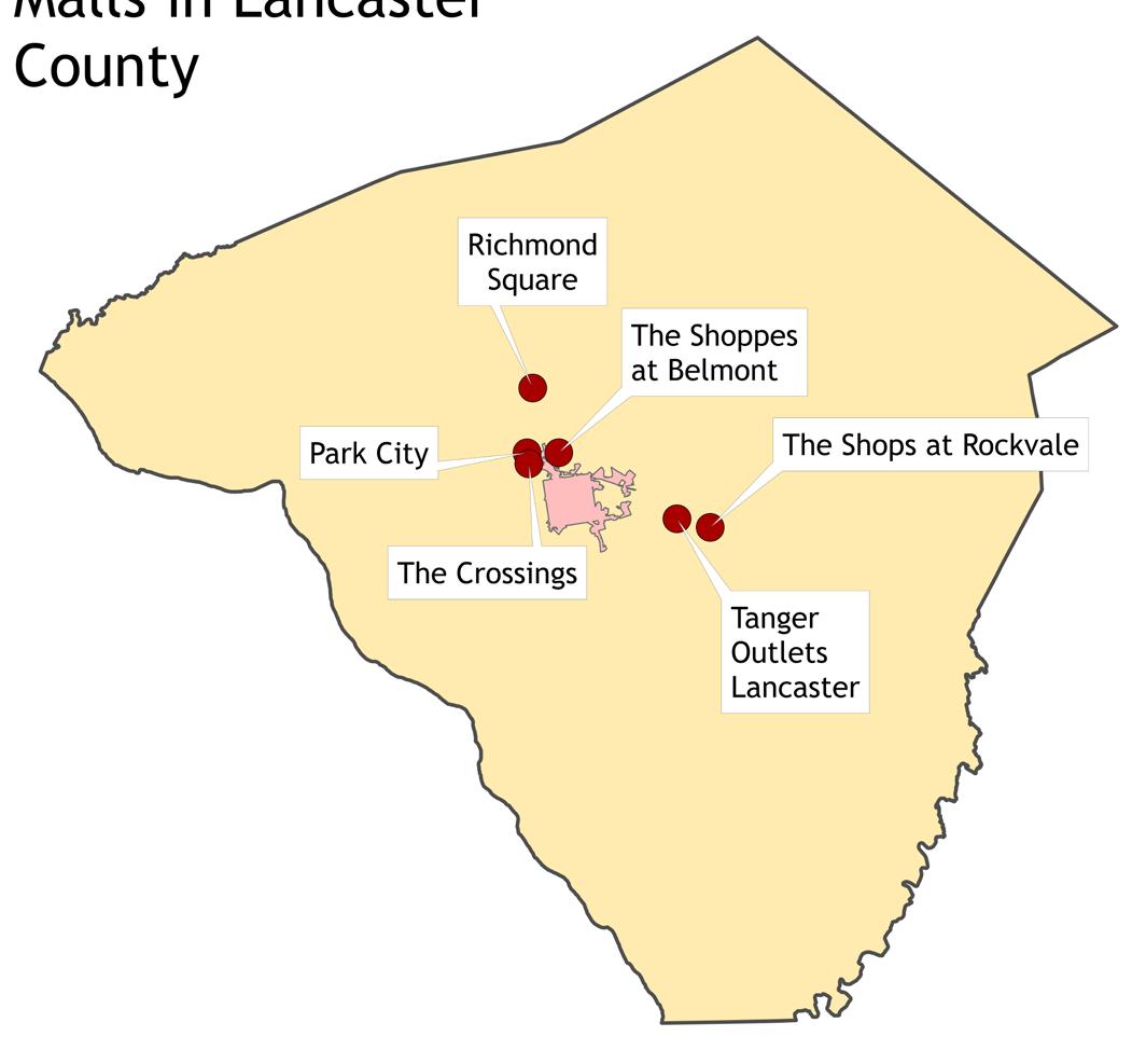 Figure 3: Map of malls and shopping centers in Central Lancaster County.