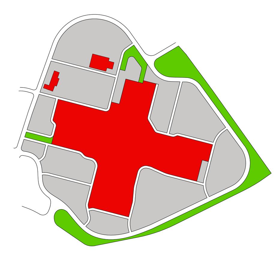 infrastructure, a lack of green space and trees resulting in poor stormwater management, and a windowless exterior for much of the mall building.