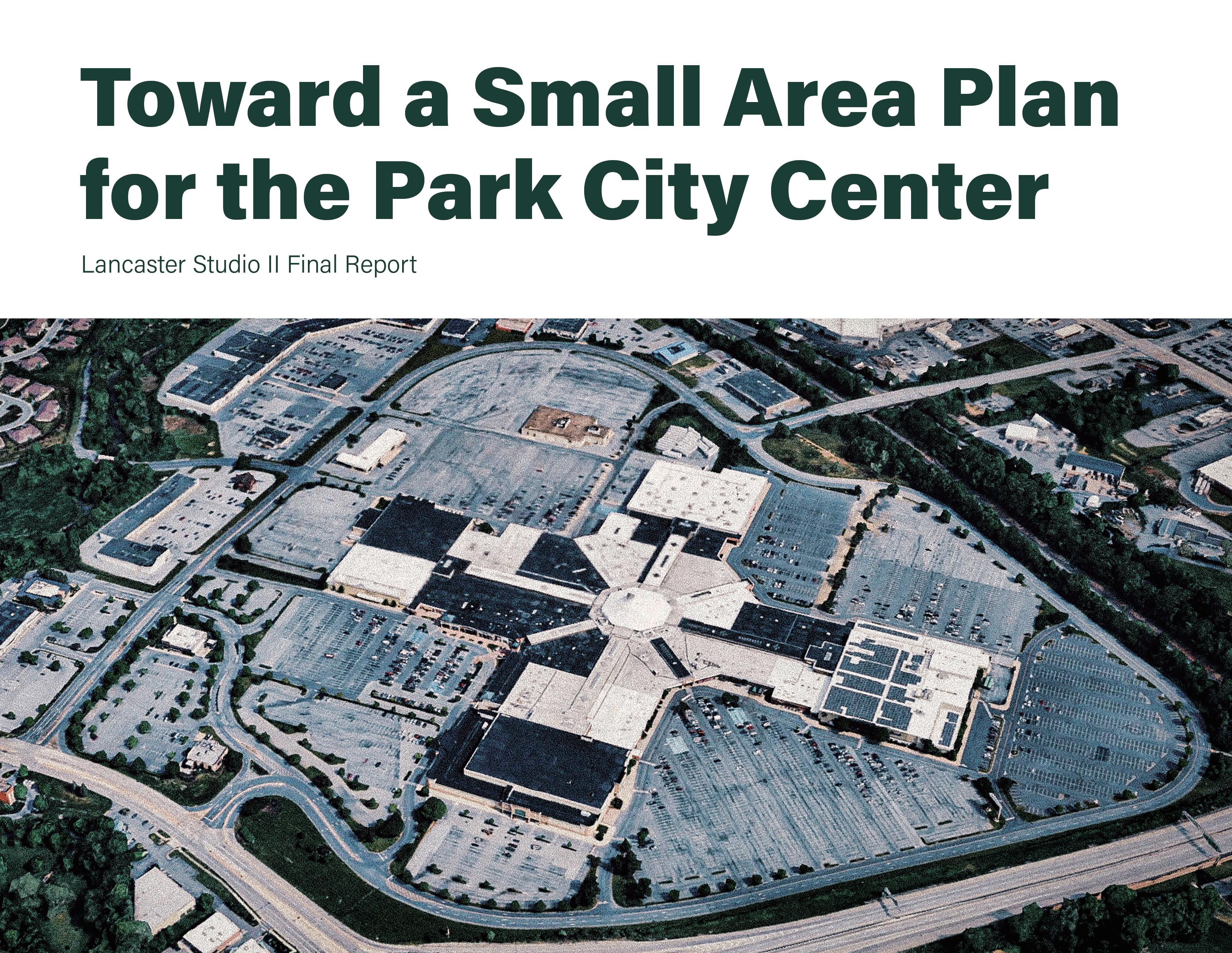 The City of Lancaster (the “City”) has recommended a Small Area Plan for the Park City Center (“Park City,” “Park City Mall,” the “Center,” or the “Mall”) site that emphasizes housing, economic development, and improved environmental performance. The recommendations of this studio aim to provide ideas for the City of Lancaster Department of Community Planning and Economic Development in the creation of that Small Area Plan.