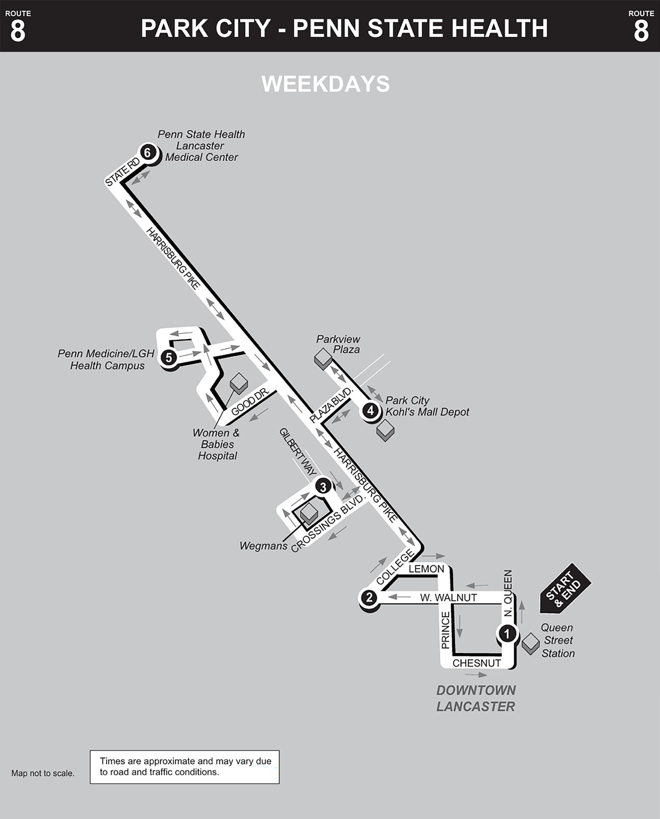 26 Red Rose Transit Authority. (n.d.). Route 8/Park City – Penn State Health schedule Retrieved from https://www.redrosetransit.com/schedules/route-8-park-city-penn-statehealth-11-11