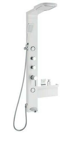 4 mm ESG-Glasrückwand weiß 3 Massagedüsen, Alu-Profile chrom Doppelrollen oben/unten klappbar Einhebelmischer mit Umsteller Griffe, Kopfbrause, Glasablage Handbrause verstellbar Brausetasse 14 cm hoch Größe: 80 x 80 x 215 cm pro Stück