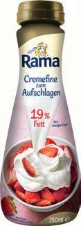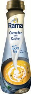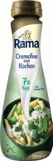 Rama Cremefine ist die leichte Alternative zu Schlagobers. Rama Cremefine zum Kochen ist ideal zum Verfeinern von Saucen und Suppen. Rama Cremefine zum Schlagen enthält 19 % Fett und eignet sich ideal für Kuchen und Desserts.
