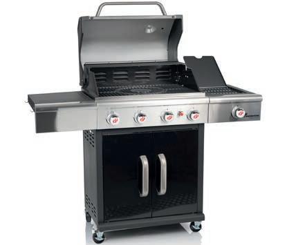 GASGRILL* hochwertiges Design mit Edelstahlblenden, mit Modulus-System zum Erschaffen Ihrer eigenen Grillfläche mit Platz für Wok u. v. m. mit 4 stufenlos einstellbaren Brennern und elektronischer Zündung für Temperaturen bis zu 300 °C integrierte maxX-Zone (versenkt eingebauter Infrarot-Seitenbrenner mit 3,7 kW) für eine maximale Temperatur von bis zu 800 °C zum scharfen Anbraten, passend für 5-, 8- und 11-kg-Gasflaschen