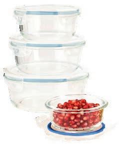 GLAS-FRISCHHALTEDOSEN* mit Clip-Deckel bestehend aus ca. 200 ml, 390 ml, 640 ml, 970 ml und 1300 ml pro Set