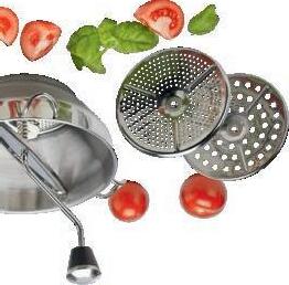 EDELSTAHL-PASSIERSIEB* in Trichterform mit 3 Einsätzen: 2, 3 und 8 mm Lochdurchmesser mit 2 Topfhalterungen für sicheres Abstützen beim Arbeiten pro Stück