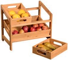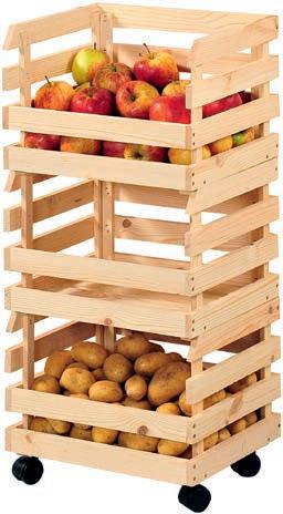 OBST- UND KARTOFFELHORDE* aus FSC®-zertifiziertem Kiefernholz 3 Ebenen zum Aufbewahren mit 4 Lenkrollen