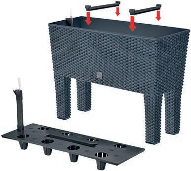 HOCHBEET* in Rattanoptik steckbare Standbeine Fassungsvermögen: ca. 30 Liter Größe: mit Standfüßen ca. 60 x 25 x 46 cm pro Stück mit Bewässerungssystem