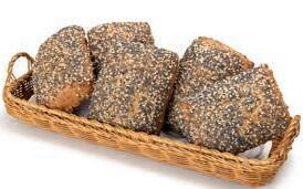 Dreikorn-Weckerl aus Weizen-, Roggen- und Hirsemehl, bestreut mit Sesam, Mohn und Sonnenblumenkernen pro 100 g Stück BÄCKERKRÖNUNG JAUSEN-MAXI zarter Plunderteig mit Käsekrainer gefüllt, bestreut mit Sesam und Leinsamen pro 110 g Stück 100 g=1.09 SCHWECHATER