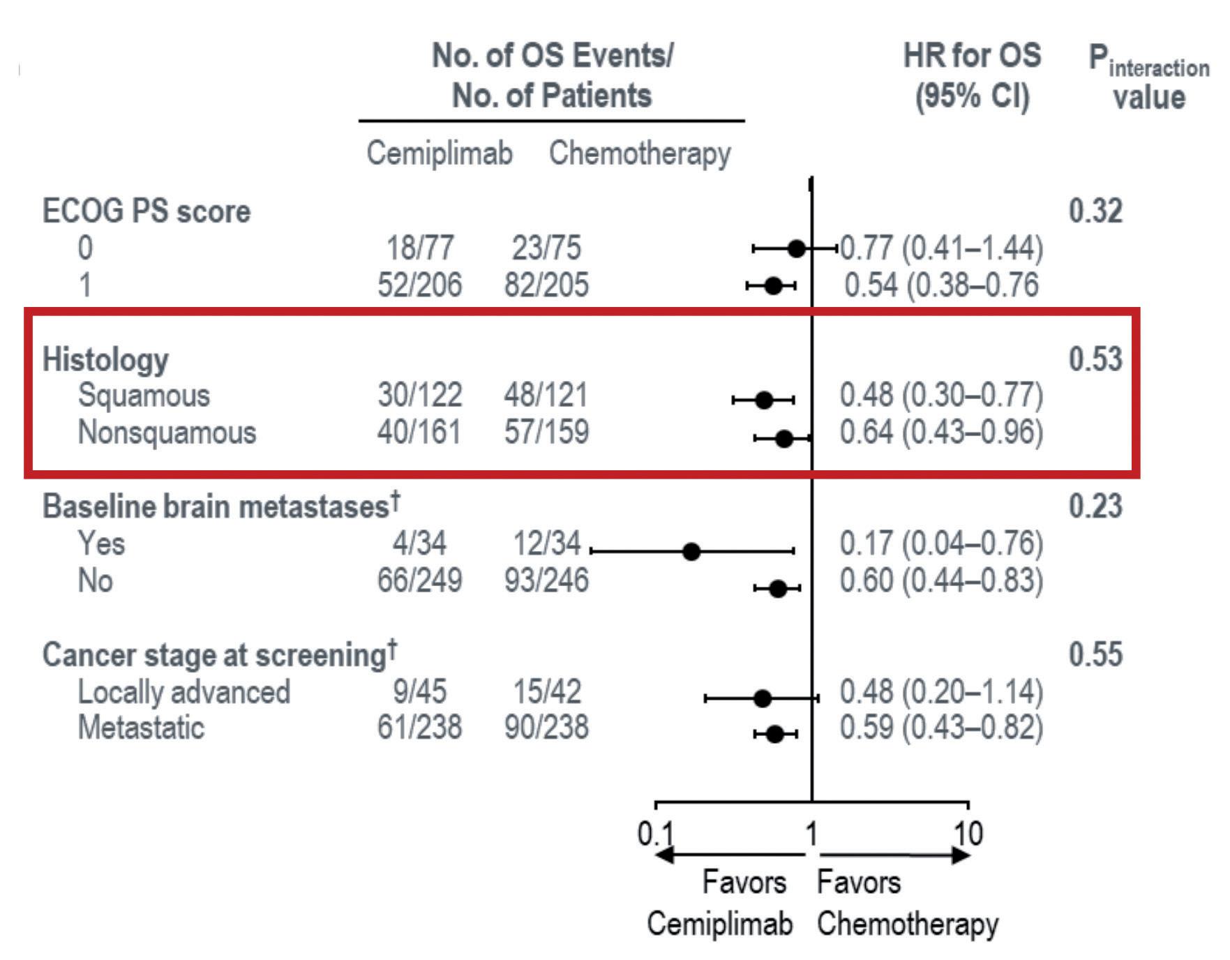 7. Bondarenko I, Sezer A, Kilickap S, et al. Clinical benefit of first-line cemiplimab in patients with locally advanced NSCLC: subgroup analysis from EMPOWERLung 1. Presented at: 2021 IASLC World Conference on Lung Cancer; September 8-14, 2021. Abstract FP04.03.