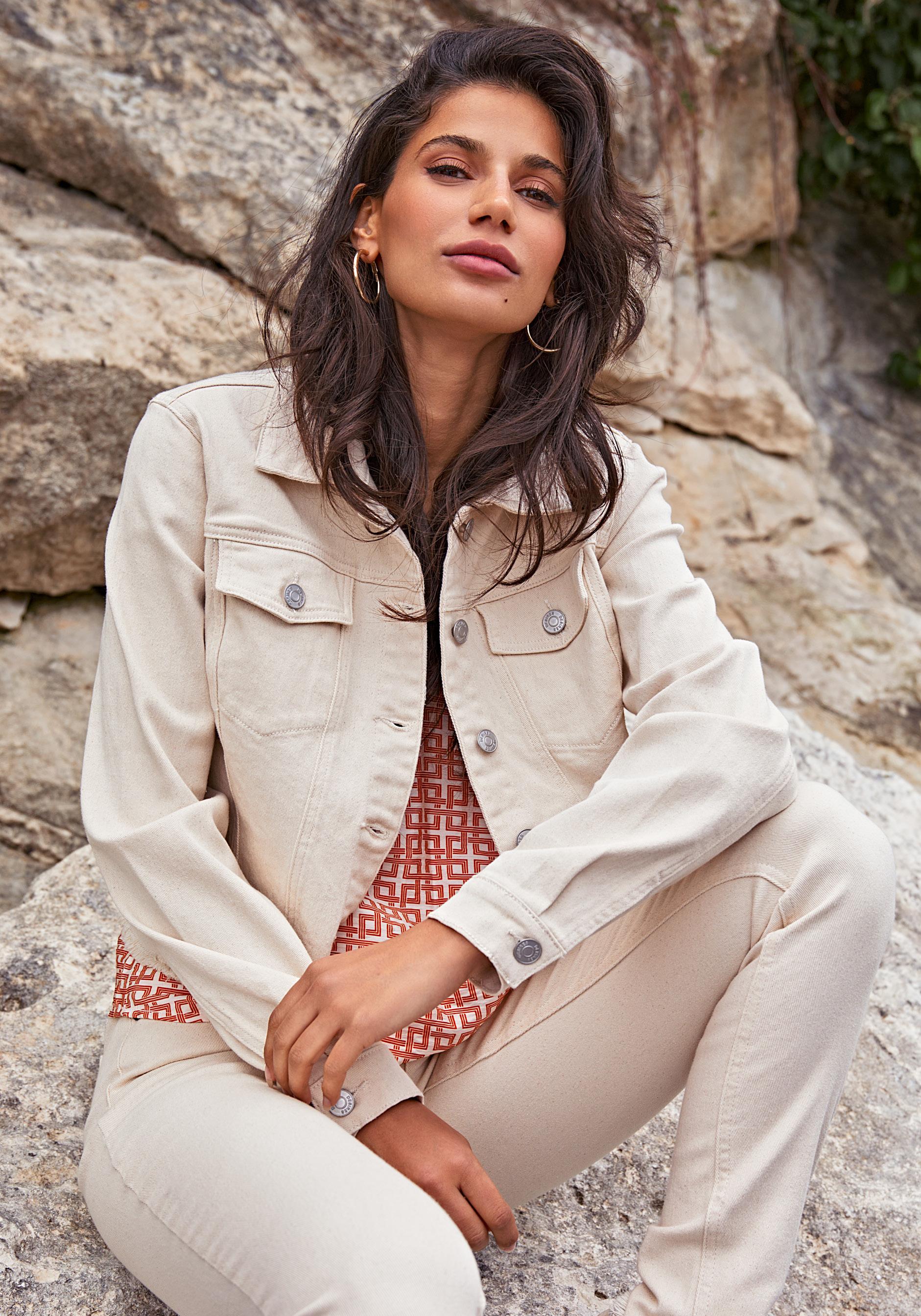 BALSA 2/4 SLEEVE BLOUSE, LOLA MID WAIST SLIM BRAIDED 5-POCKET JEANS