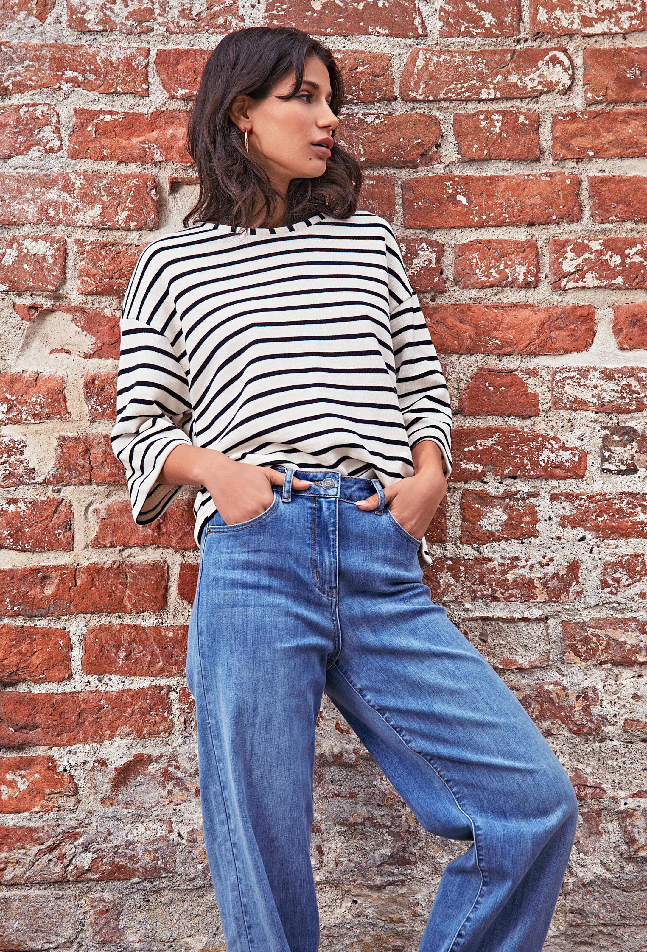 ABEBA 3/4 SLEEVE BLOUSE, ENIA MW SLIM RAW EDGE JEANS