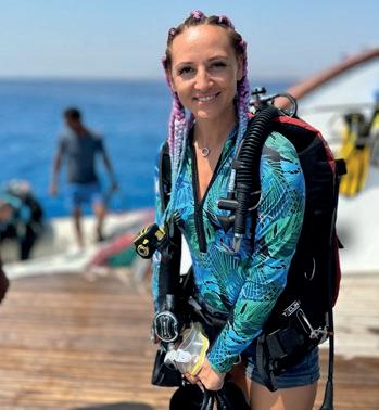 Nurkowaniem zainteresowałam się 5 lat temu. Podwodny świat pokazał mi mój partner. Od tego czasu stało się moją pasją, nieustannie pogłębiam swoje umiejętności i wiedzę w tej dziedzinie. Posiadam certyfikaty AOWD oraz Rescue Diver. Od 3 lat pracuję w specjalistycznym sklepie ze sprzętem nurkowym. To nie tylko moja praca, ale przede wszystkim okazja do dzielenia się pasją, zdobytym doświadczeniem oraz stale poszerzaną wiedzą. Codzienny kontakt zarówno ze sprzętem najwyższej jakości, jak i z ekspertami w dziedzinie nurkowania, pozwala mi rozwijać się zarówno w aspekcie teoretycznym, jak i praktycznym. Miałam okazję nurkować w różnorodnych akwenach, choć największą przyjemność sprawiają mi ciepłe, przejrzyste wody, które umożliwiają pełne podziwianie podwodnego świata. Moją szczególną sympatię zdobyły Raja Ampat oraz Meksyk – miejsca, które urzekły mnie bogactwem morskiego życia i spektakularnymi formacjami podwodnymi. Dla mnie nurkowanie to znacznie więcej niż hobby – to styl życia. W najbliższej przyszłości planuję bliżej zapoznać się z wymagającymi warunkami zimnych i ciemnych polskich akwenów. Marzeniem, które towarzyszy mi od początku nurkowej przygody, jest przepłynięcie pod Archem – mam nadzieję, że uda mi się je zrealizować.
