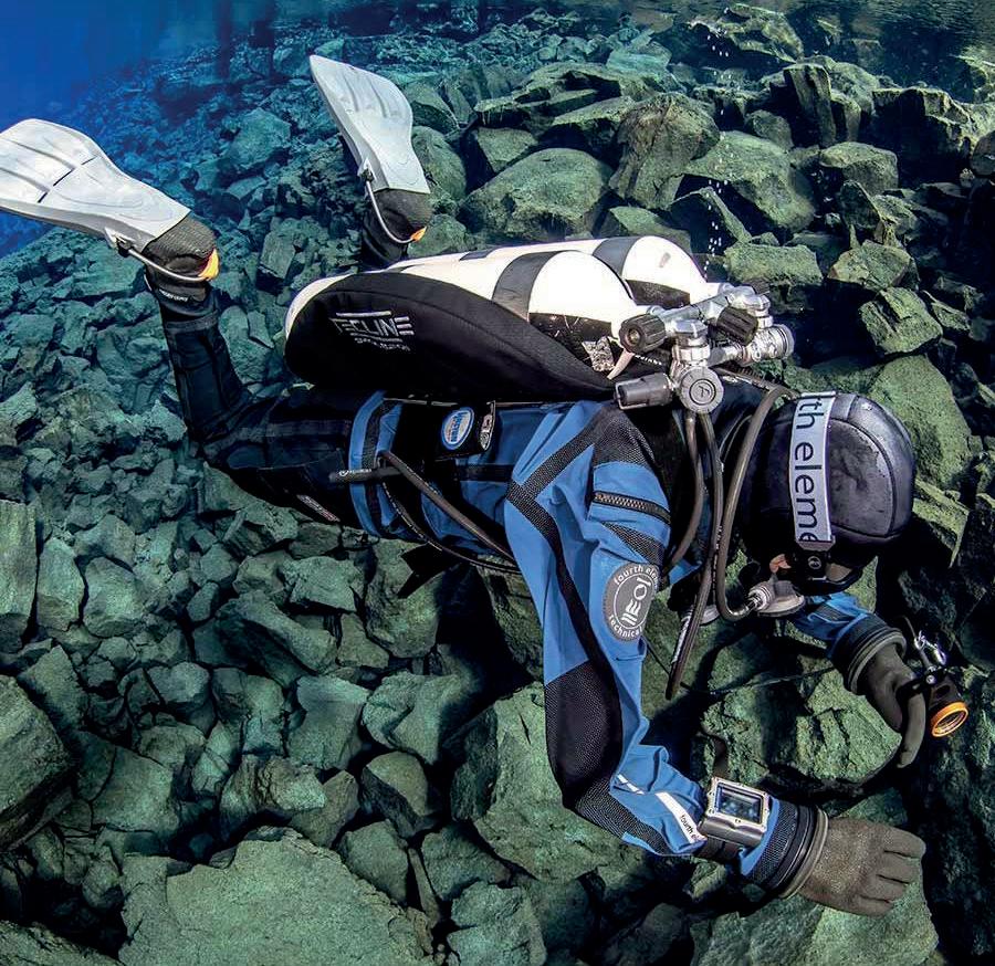 Suchy skafander wpływa na pozycję nurka pod wodą.