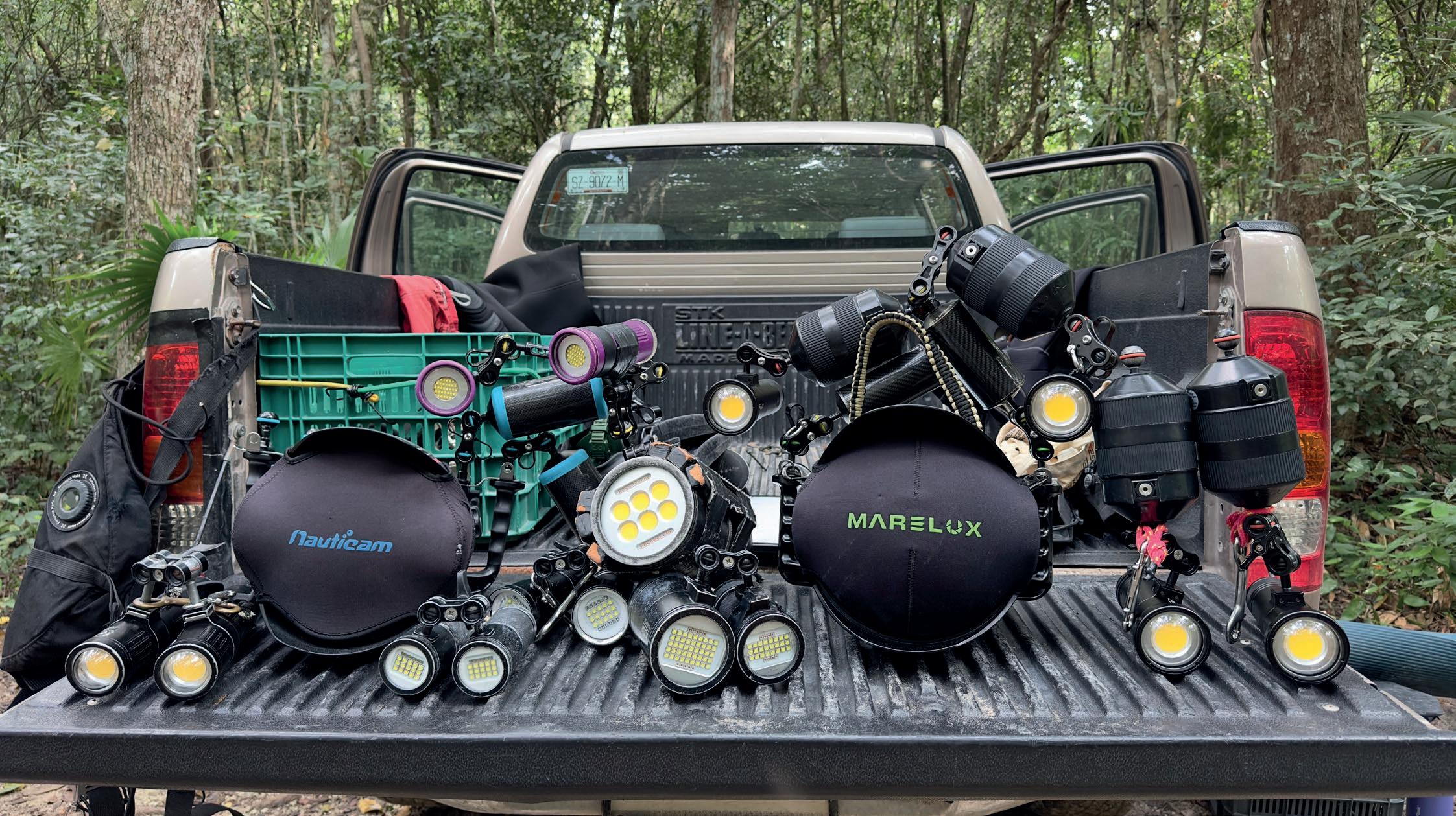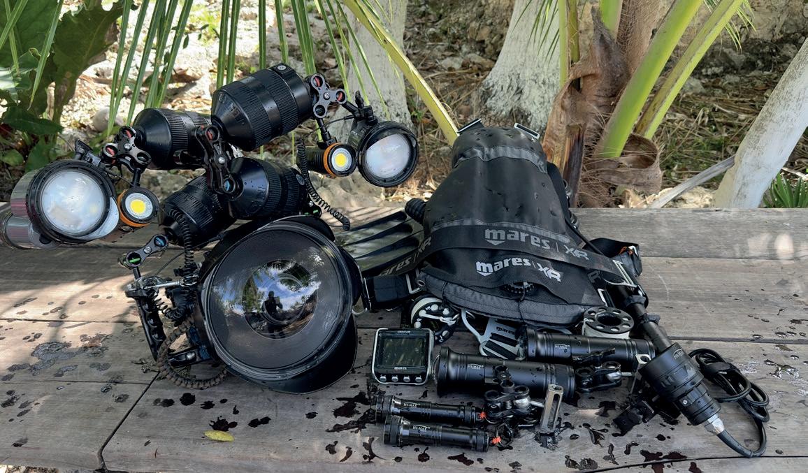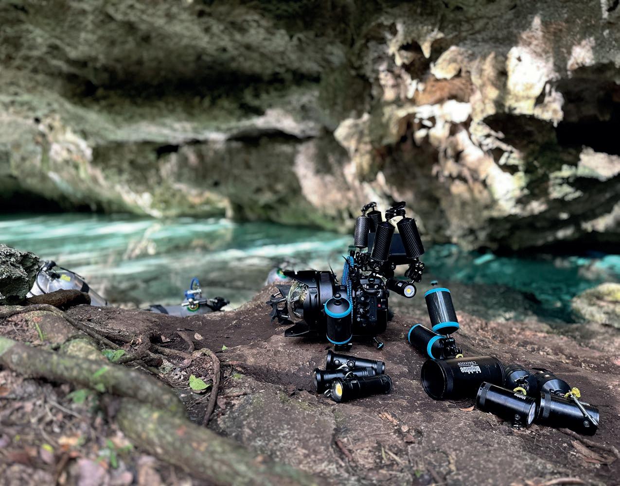 Wejście do bardzo ciasnych jaskiń wiąże się z ogromnym ryzykiem uszkodzenia sprzętu. Poruszanie się po statku z tak ogromnym zestawem to nie lada wyzwanie. A wskakiwanie z nim do wody to zawsze ogromny stres.