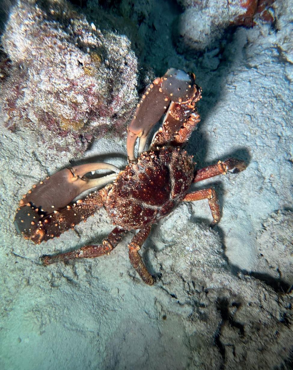 Dzisiaj czeka nas jeszcze jedno nurkowanie nocne. Robimy je w Punta Pertiz Jordain. Znamy już to miejsce z nurkowania w dzień. Jednak nurkowanie nocne zawsze jest zupełnie inne. Wchodzimy do wody tuż po zachodzie słońca. Pod wodą czeka na nas nocne życie, pojawiają się zupełnie inne ryby spotykamy mureny, kraby pająkowe i czerwone, langusty, mątwy, małe rybki oraz skrzydlice.