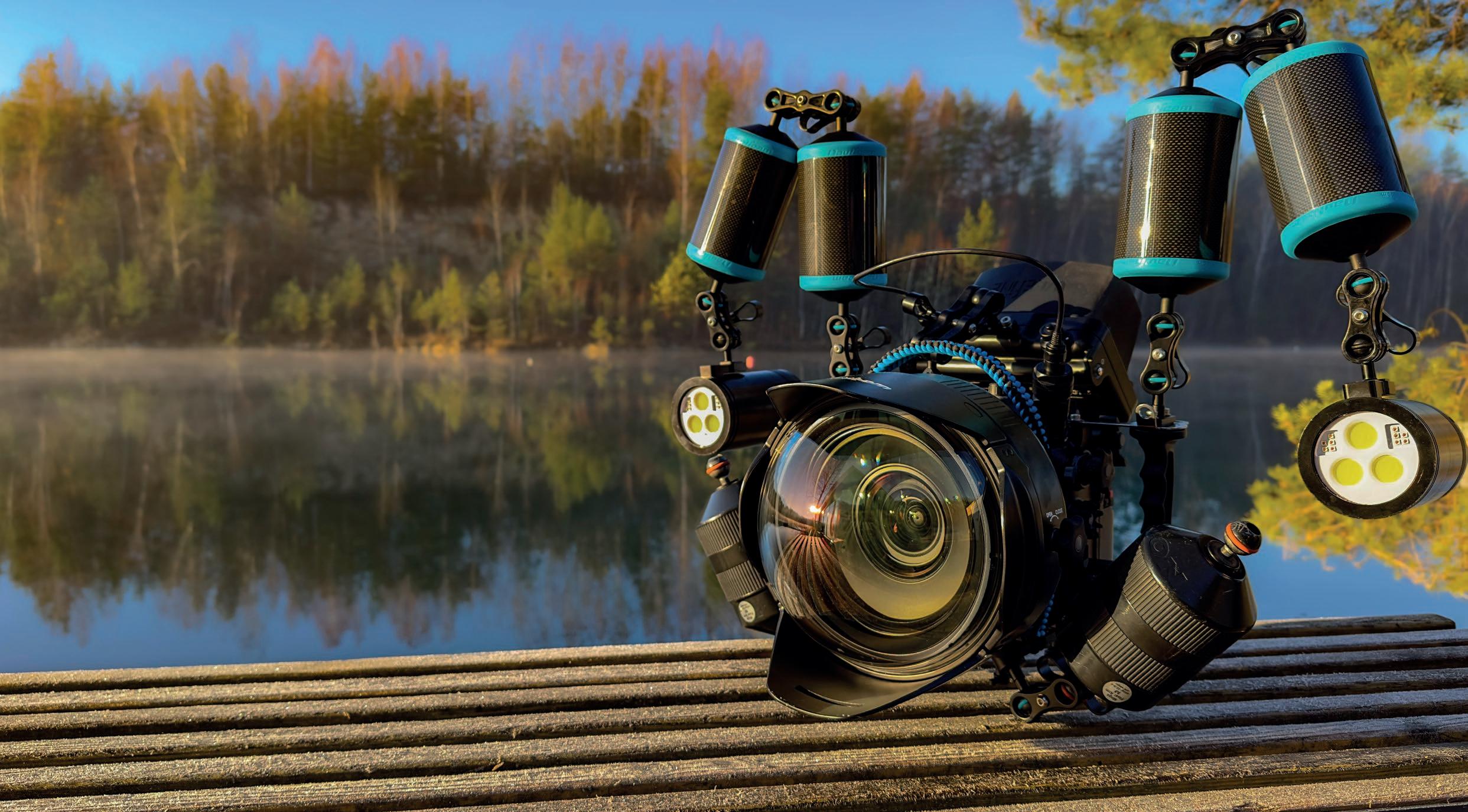 Zakupiłem Canon R3 z obiektywem 15-35 mm F 2.8 L USM. Wsadziłem go do obudowy Nauticam, a wisienką na torcie był port WACP-2 250 mm. Dla większego komfortu filmowania doło-