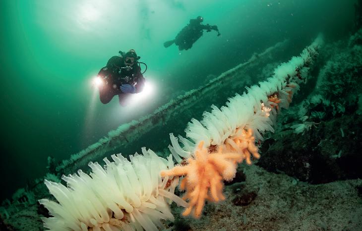 w otoczeniu przecudownych ścianek i formacji skalnych porośniętych gąbkami, anemonami, gorgoniami i lasem kelpowym. Mnogość kolorów i ich nasycenie powoduje oczopląs, a człowiek zaczyna zastanawiać się czy to jawa czy sen, dochodząc do tylko jednego wniosku – Jacques Cousteau miał rację.
