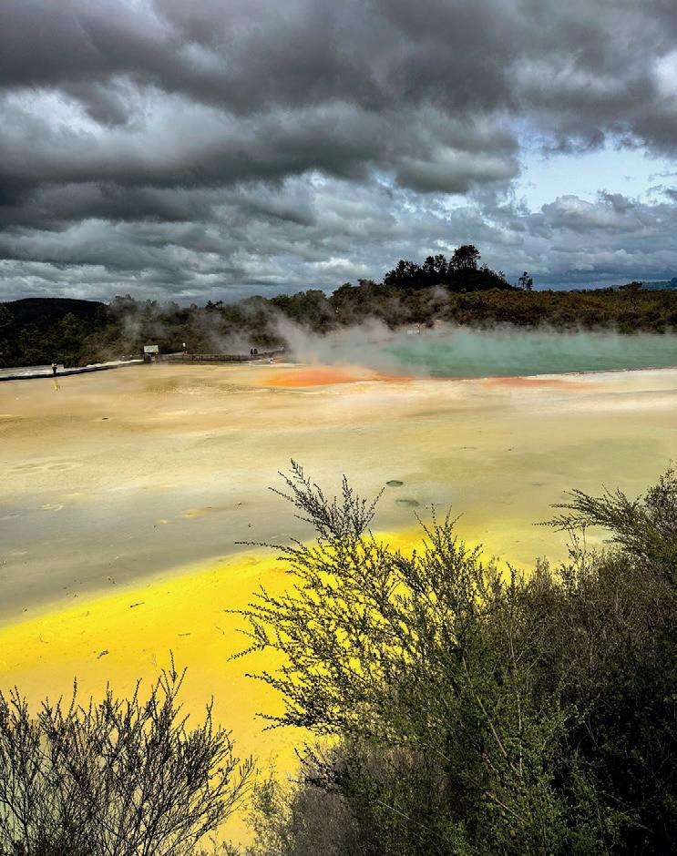 Wyspa Północna Nowej Zelandii leży na styku płyt tektonicznych, co sprawia, że jest jednym z najbardziej aktywnych geotermalnie obszarów na świecie. W rejonie tzw. Taupō Volcanic Zone można obserwować gejzery, bulgoczące błotne kotły, gorące źródła oraz parujące szczeliny w ziemi. Najbardziej znanym miejscem jest okolica Rotorua, gdzie zjawiska geotermalne występują niemal w centrum miasta. Tak naprawdę spacerując po okolicy napotykamy znaki, aby nie zbaczać z wyznaczonych ścieżek, gdyż powierzchnia ziemi może być bardzo gorąca. Gdzieniegdzie z łąk i traw wydobywa się obłok pary informujący nas, że znaki nie kłamią.
