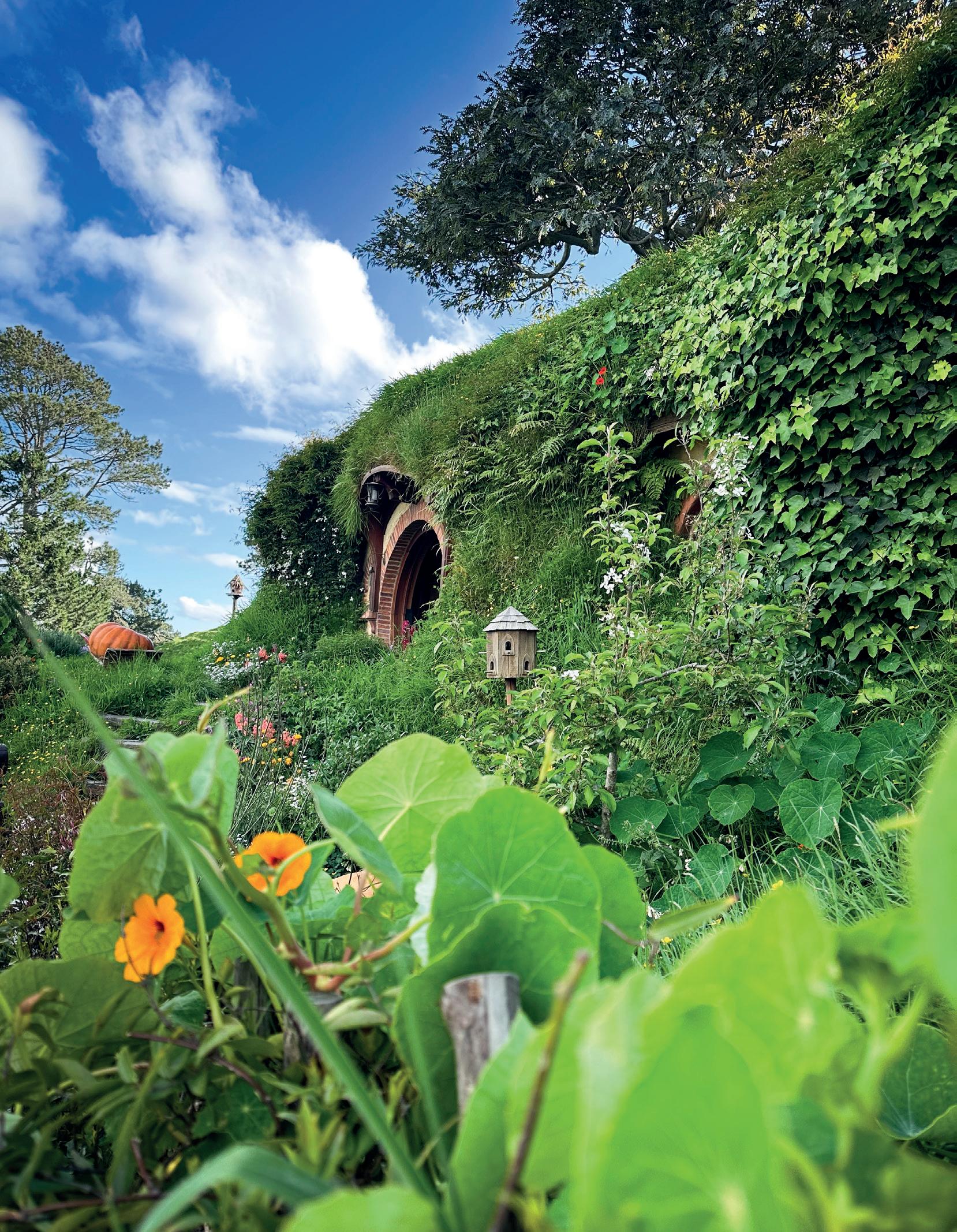 w Matamata, która powstała na terenie prywatnej farmy owiec i pierwotnie była budowana jako tymczasowa scenografia do filmu „Władca Pierścieni”. W chwili obecnej jest to biletowana atrakcja turystyczna pozwalająca świetnie wczuć się w klimat filmu i sielanki hobbitowej. Kwitną nasturcje, warzywnik tętni życiem, co ciekawe, w wielu hobbitowych norach wciąż pali się światło, a dym unoszący się z kominów i pranie suszone na sznurach to element scenografii, który ma sprawiać wrażenie, że mieszkańcy tylko na chwilę wyszli z domu. Jeden z domów (są takie dwa: zielony i czerwony) moż-