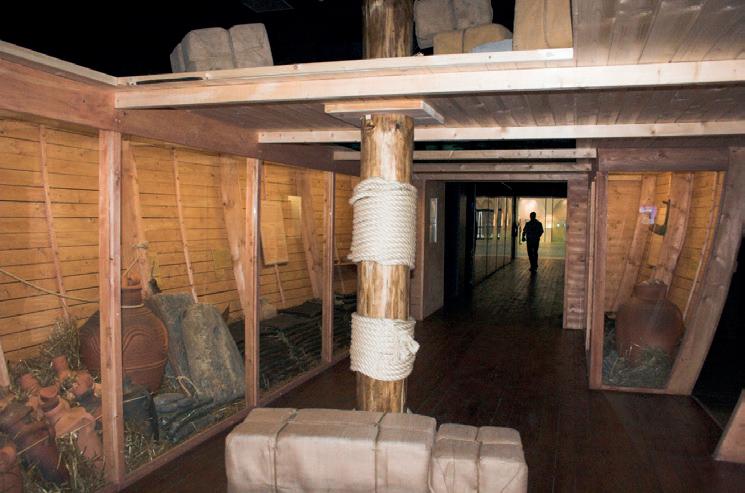 Sceneria z repliką i oryginalnymi artefaktami z wraku Uluburun, wystawa w Bochum