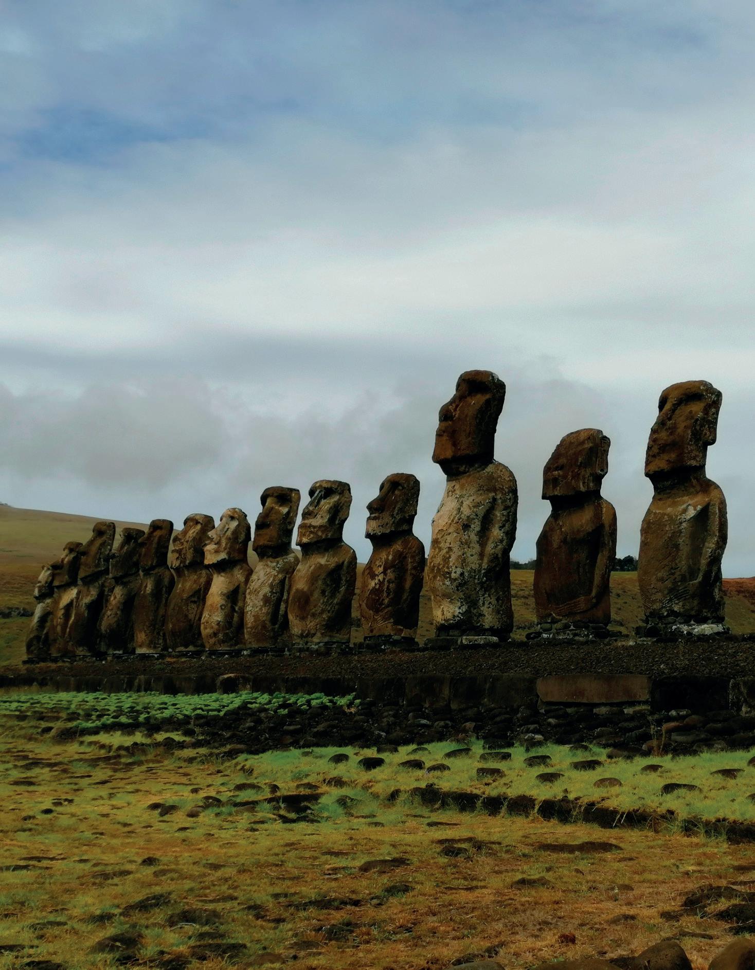 About 900 Moai statues have been discovered on the island today, the highest of which is 21 meters high. Their average height is about 4–5 meters. All places on the island where we can find these mysterious sculptures are part of the Rapa Nui National Park, which has been on the UNESCO World Heritage List since 1995. The island belongs to the most isolated places on Earth. It is incredibly green, and its surface is covered with mountains and volcanoes.