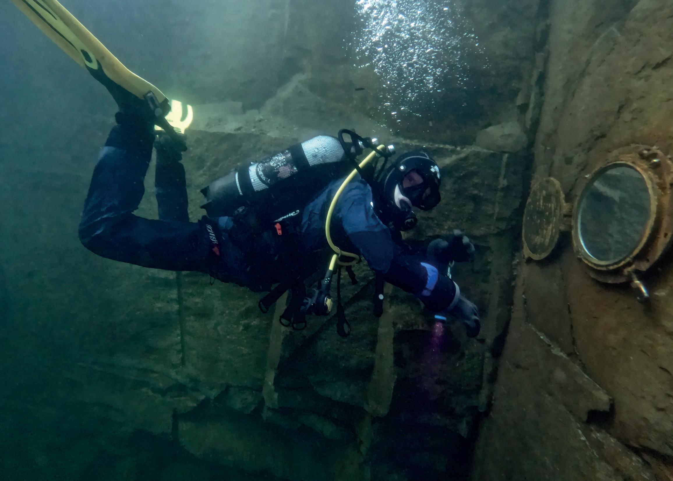 He has been diving for 35 years. He has spent more than 16,000 hours underwater, most of them diving technically. He has been an instructor and mentor instructor for many organizations including CMAS, GUE, IANTD, PADI. He co-created the training programs for some of them. He is a professional with vast knowledge and practical experience. He has participated in many diving projects as a leader, explorer, initiator or speaker. He was the first Pole to dive the HMHS Britannic wreck (117m). He was the first to explore the deep part of the Glavas Cave (118m). He made a series of dives documenting the wreck of ORP GROM (110m). He has documented deep (100-120m) parts of flooded mines. He is the creator and designer of many equipment solutions to improve diving safety.