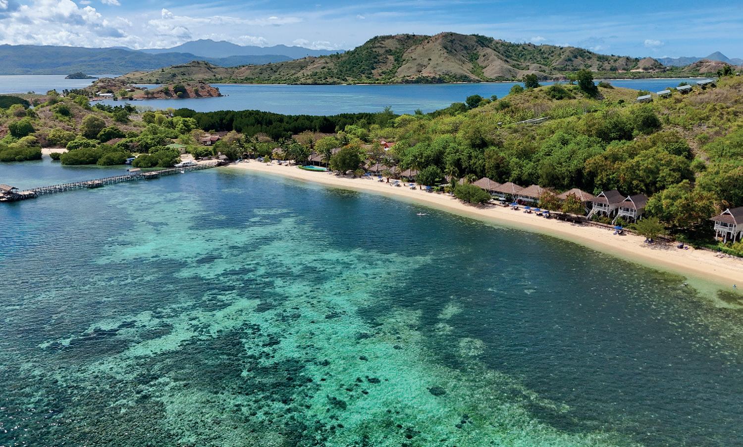 boat pass in the blink of an eye. We reach a wooden pier stretching far into the sea. We climb the wooden stairs to the pier. A few people from the staff came out to meet us. With a welcome drink in hand, we head to the reception.