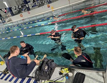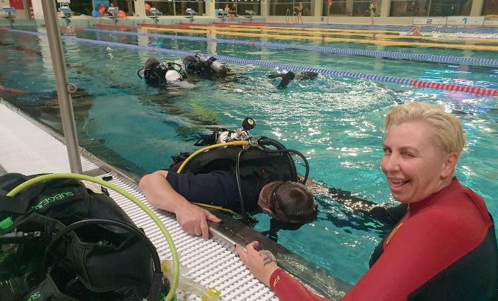 It’s always a good idea to train on land in dry conditions. Another effective method is night dives in controlled environments: a pool or a familiar dive site.