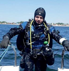 He has been diving for 35 years. He has spent more than 16,000 hours underwater, most of them diving technically. He has been an instructor and mentor instructor for many organizations including CMAS, GUE, IANTD, PADI. He co-created the training programs for some of them. He is a professional with vast knowledge and practical experience. He has participated in many diving projects as a leader, explorer, initiator or speaker. He was the first Pole to dive the HMHS Britannic wreck (117m). He was the first to explore the deep part of the Glavas Cave (118m). He made a series of dives documenting the wreck of ORP GROM (110m). He has documented deep (100-120m) parts of flooded mines. He is the creator and designer of many equipment solutions to improve diving safety.
