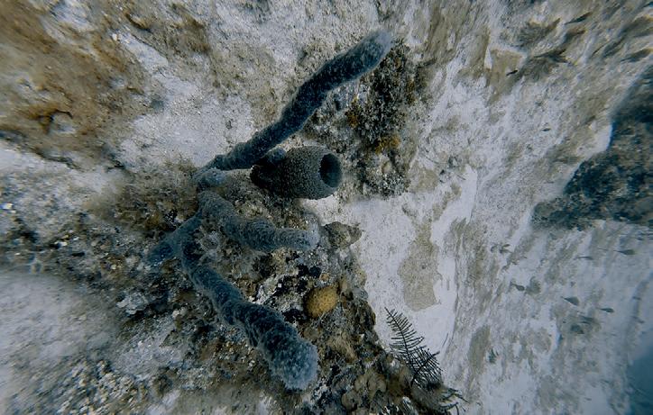 Two large individuals catch my eye. They are swimming close together, their bodies forming two opposing arcs, like the ancient Chinese symbol of yin and yang. They turn in a peculiar dance, descending lower and lower until they touch the bottom. For a brief moment, they remain facing one another, motionless in the vastness of the ocean. A moment later, they swim off in the same direction, leaving behind only silence and awe.