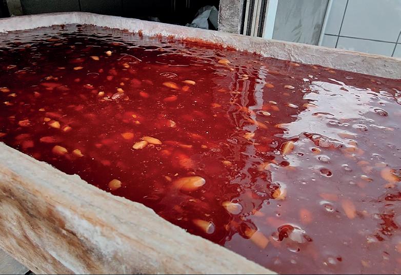 are already large but have not yet formed a shell. They are boiled in a sugar broth and pasteurised in jars. Cypriots also preserve other fruit this way, e.g. figs, berries, apricots, apples, pears and cherries; they are a great addition to Cypriot coffee.
