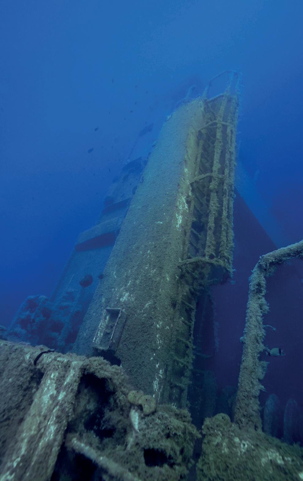The wreck starts at a depth of approximately 16 m. You dive twice here and, in order to thoroughly explore the wreck, many decide to dive 4–10 times. To be honest, the wreck is huge and there is a lot to admire and penetrate. Even more so, as over more than 40 years it has become the habitat of countless sea creatures.