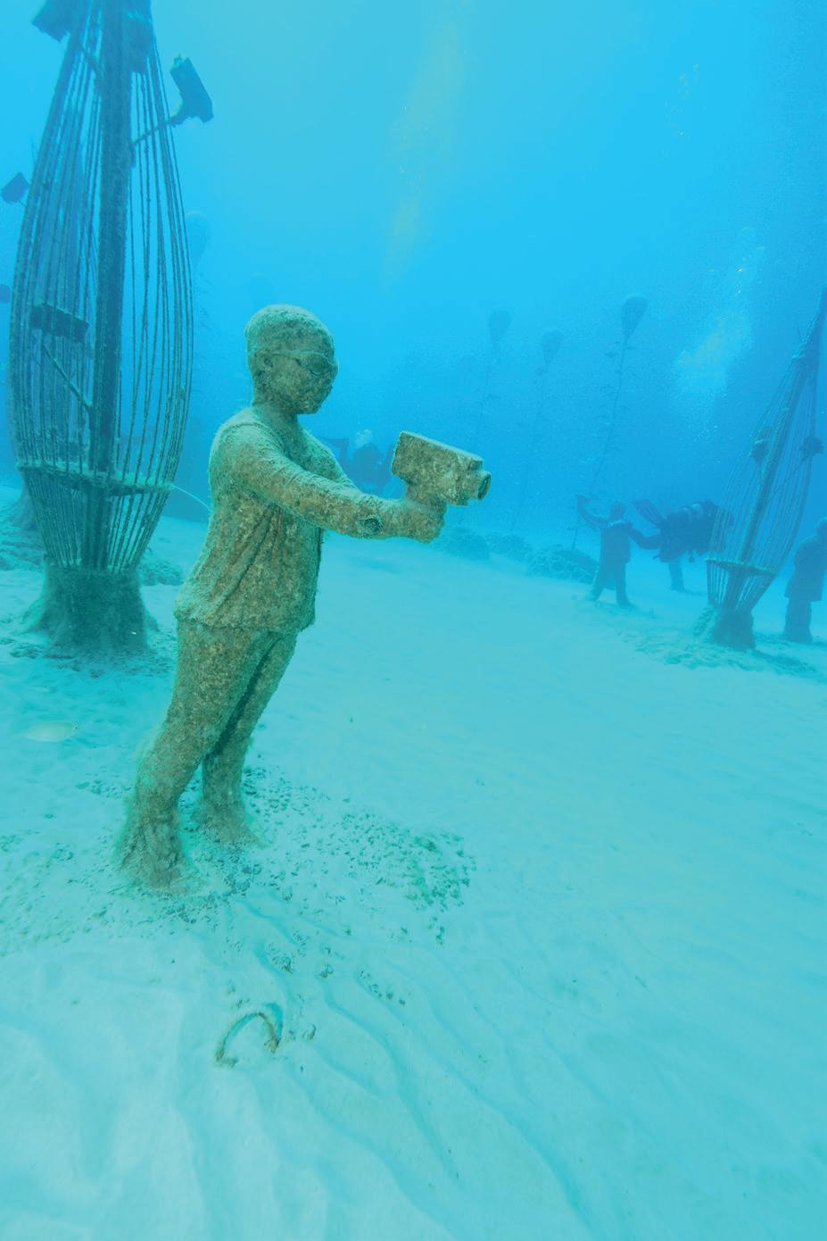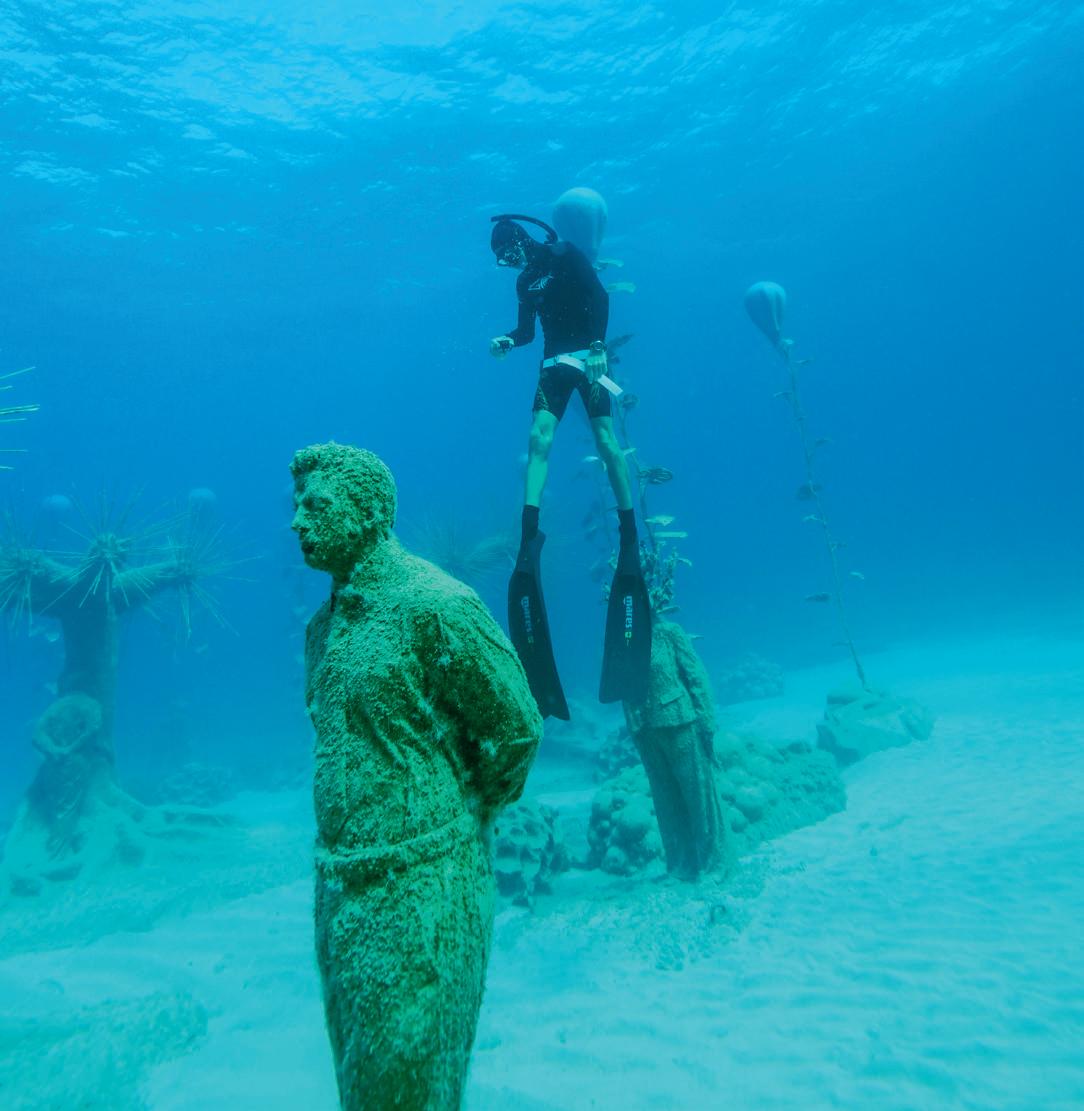 Art is just like that, although an artist has their vision when creating, their work starts to live a life of its own in the end. This happens literally and metaphorically at MUSAN. The underwater exhibition, which slowly becomes a habitat for marine life, is also a story of present-day people presented from the perspective of an anonymous street. Ubiquitous cameras monitoring our lives, mutual invigilation and praying for a better and richer, but virtual, life. When chasing a better life, we forget that we are part of a cycle. Wounded, stripped of our dreams, but constantly with hope for a better tomorrow. MUSAN is the modern world, which attracts with its form. Time runs differently here, somewhat slower, although unavoidable ascent awaits us all in the end. We wish you a pleasant, individual perception of the exhibition proposed by Jason de Caires Taylor.