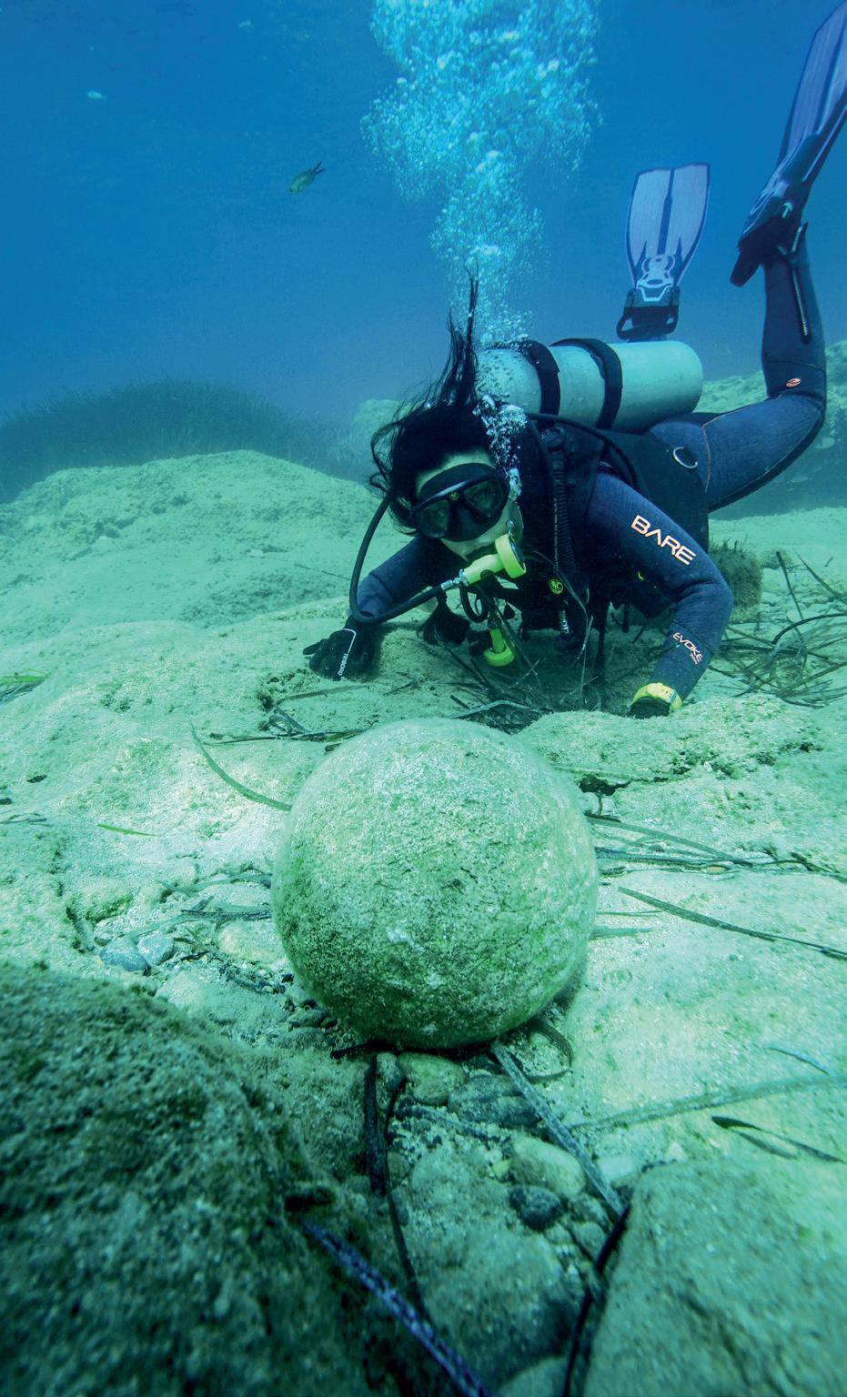 A place where we enter the water almost directly from the streets of Paphos. We dive from a shore near the Roman Port... The underwater wall was built over 2000 years ago as a type of a breakwater. It consisted of two parallel walls. Nowadays, under the effect of the weather conditions and seabed structure changes, one of the walls is completely submerged underwater and the other one just slightly protrudes above it. Over hundreds of years, the entire structure has turned into an artificial reef. At first, it may seem to be just a bunch of rocks lying around, but when you swim over it, you can outright see that the shape of this structure proves it is a work of men rather than nature. A great place for chillout diving. The depth practically does not exceed 6 m. There are actually two walls here, with anchors and animals in between. Octopuses and bristle worms hide under the rocks, while smaller shoals of common two-banded seabreams swim between the stones. Small scorpionfish, single groupers and cornetfish can also be seen here. Inquisitive divers will also find a cannonball made of stone.