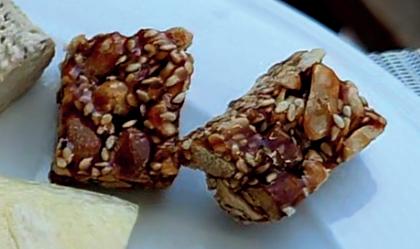 The crunchy treat of Cyprus. Sesame and nuts dunked in honey paste, moulded into the shape of bars or