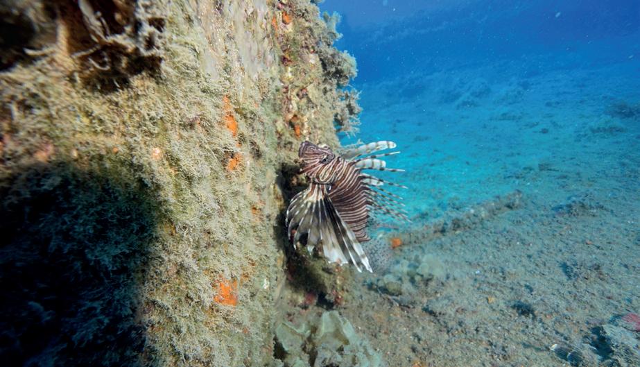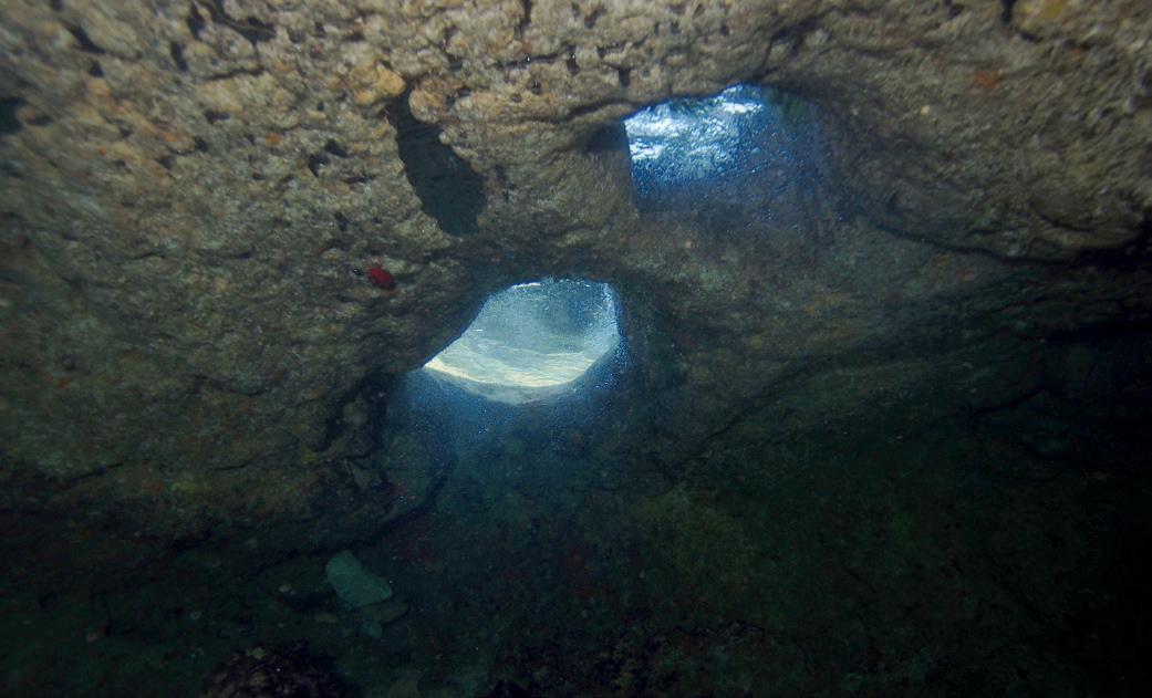 tween the rocks and the guide has to check what the situation in the the part below the rock ledge looks like. It is the best to descend quickly into the grotto. It is large and can easily hold several divers at the same time. Remember about your torches. As we swim out and begin ascending to the surface, we explore a wall overgrown with sponges, sea anemones and tunicates. You can find slugs, bristle worms, spiny lobsters, moray eels and scorpionfish here. Fish typical for the Mediterranean Sea swim nearby and lionfish can be seen in the rocky passages. Turtles, which can be found here, are an interesting novelty.