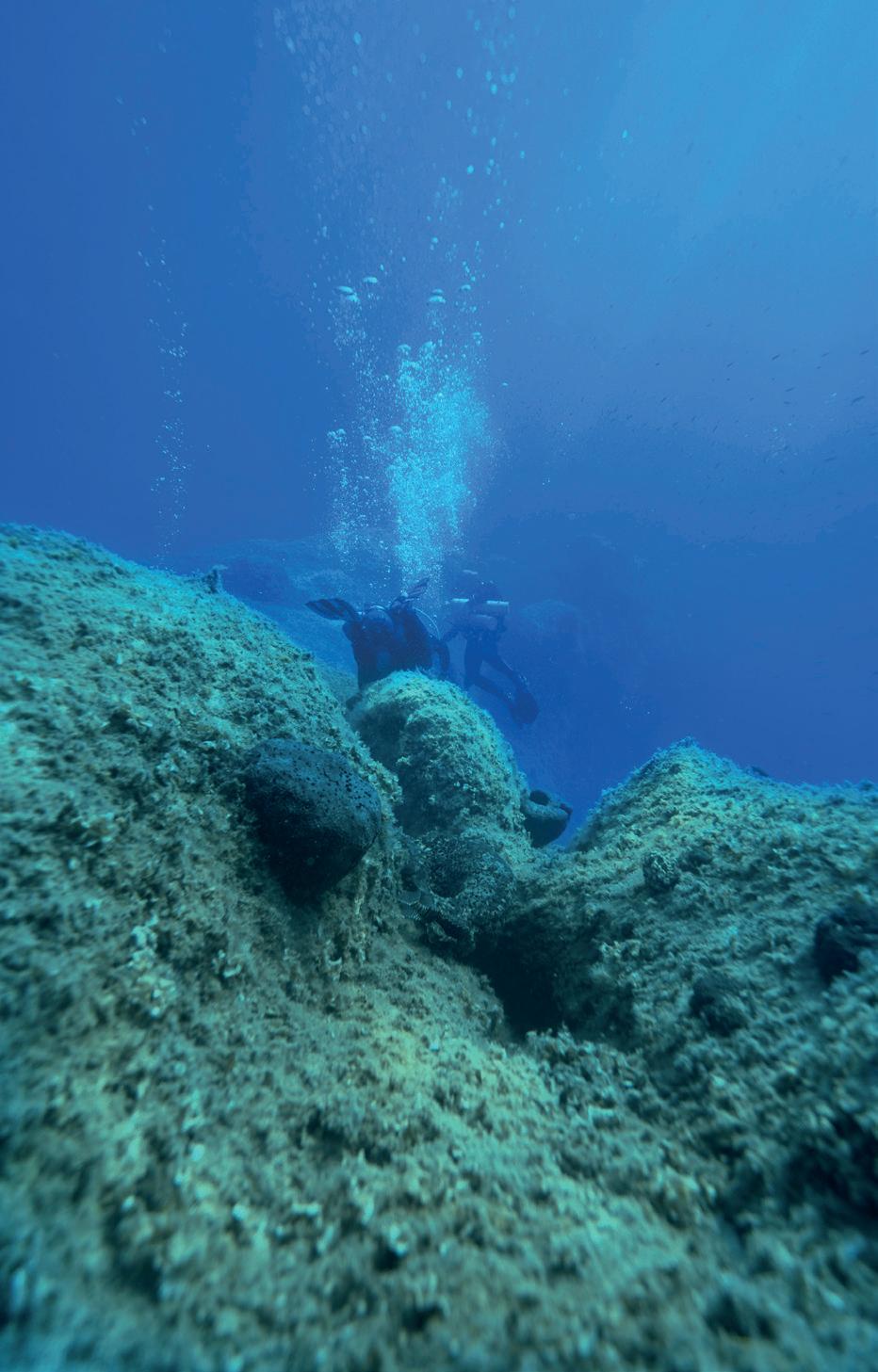 found at the bottom of the western wall and you might want to look for octopuses, moray eels, shrimps, bristle worms and others in its numerous crevasses. In the depths you will be accompanied by countless fish shoals. At the depth of 8 m, there is a grotto (bring a torch), which is the perfect place to end your dive. In addition to walls, the south-eastern side also offers tunnels. Groupers, cornetfish, barracudas and even squids can often be seen here, even during daytime. Marine life is the most plentiful at depth between 5 and 15 m. If you hold the appropriate certification, you can find 16th century anchors at a depth of 42 m.